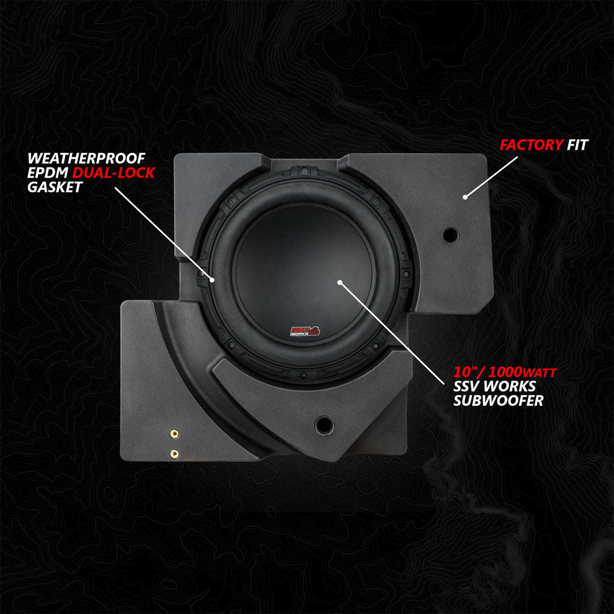 Introducing the newly revised SSV Works V-Spec 1650-watt Phase-5 audio kit designed for the Can-Am Maverick X3! This advanced system enables you to effortlessly install two 6.5" dash-speakers, two rear cage-mounted speaker and a powerful 10" subwoofer, along with a set of Kicker Amplifiers that seamlessly integrates with the included JVC Radio.