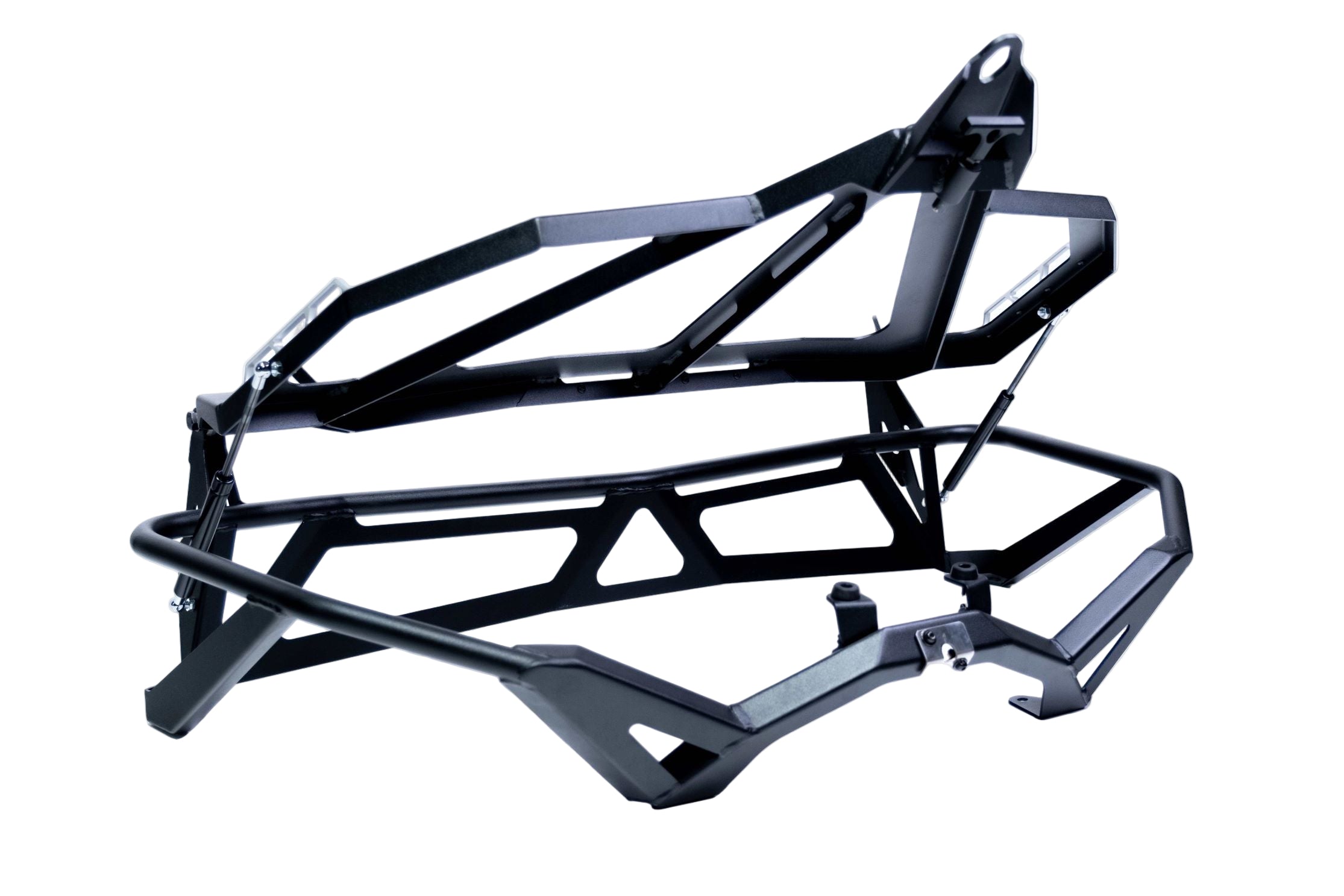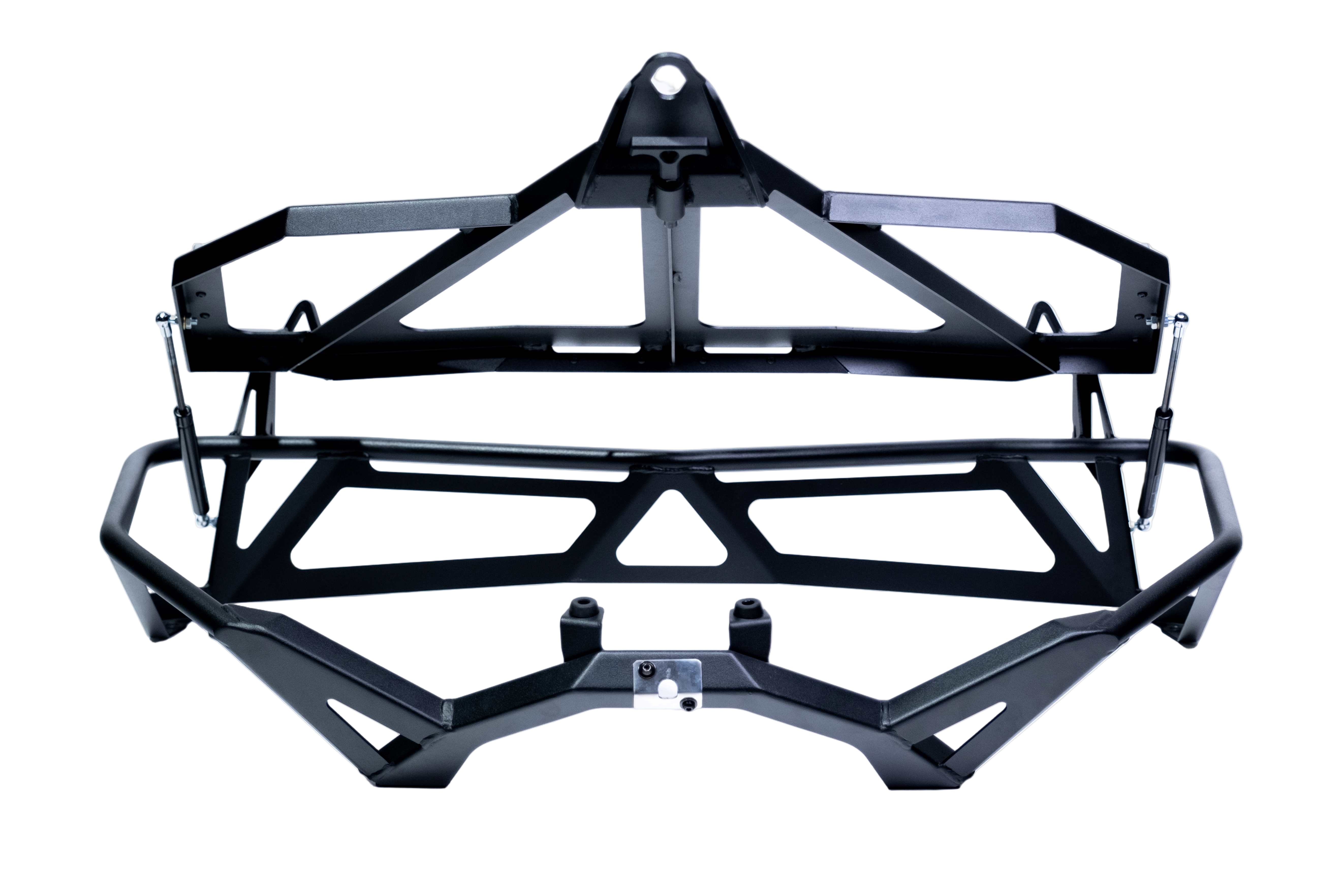Our Baja Style Spare Tire Rack for the 2017+ Can Am X3 Maverick is crafted from aluminum rails and finished in a hammer black powder coat. It includes hold down mounts and we offer Y straps to securely mount your spare. Dual gas struts provide assistance for opening the tire rack to access a storage area for tools or gear. The Baja Rack features a direct fit bolt-on installation.
