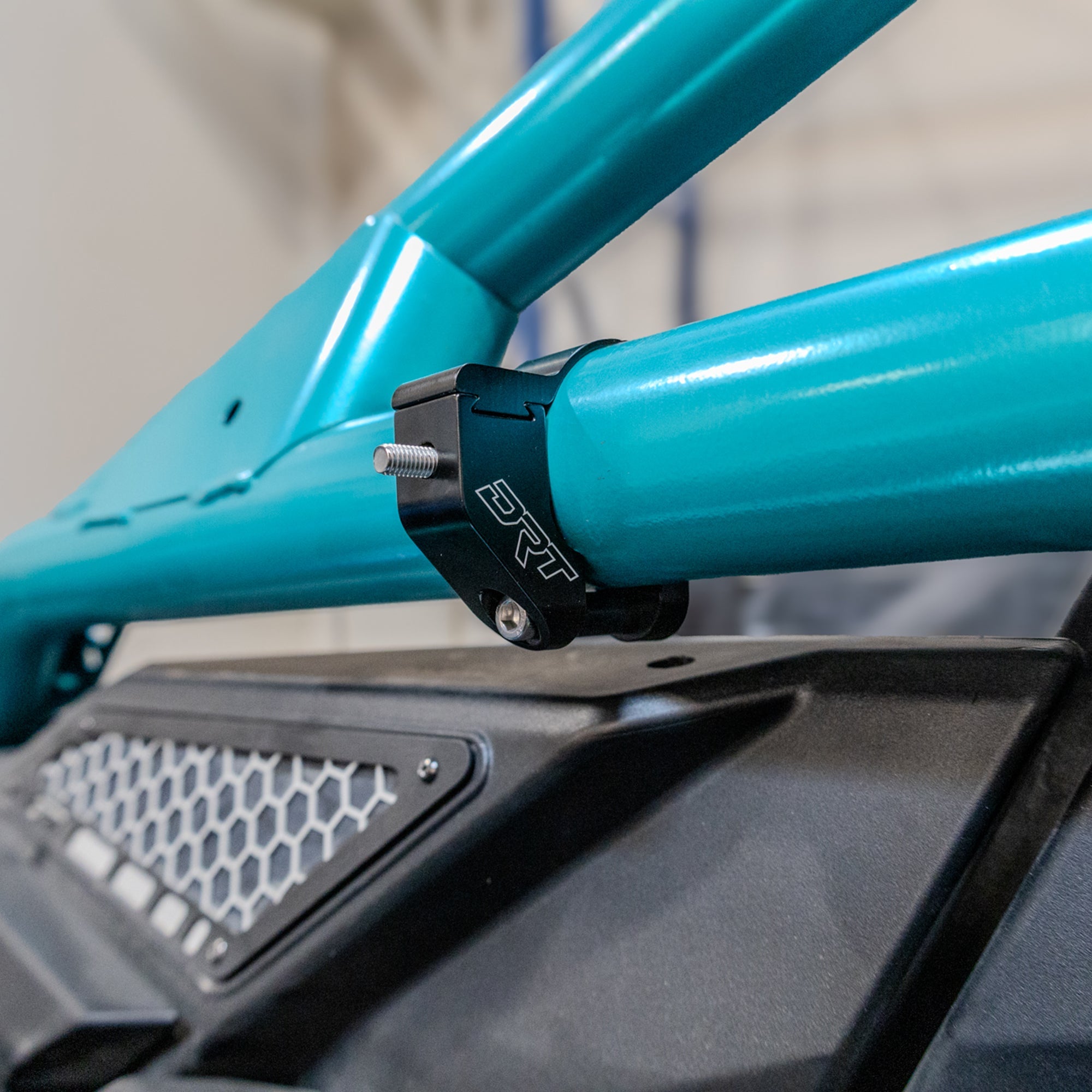 The DRT Motorsports Universal Round Tube Clamp is a great solution for mounting and attaching accessories to your round cage tube with a distinct styling. These clamps are designed to fasten and secure tightly around the cage tube and provide a reverse M6 bolt which protrudes out from the base giving unique mounting options. This design can also be converted to ¼-20 bolt as well. Made of custom-designed aluminum extrusions in various sizes to accommodate almost all brands of vehicles in the marketplace. The extruded components are CNC machined and finished in anodize for the most effective corrosion resistance and long life. All hardware is stainless steel and supplied with a thread protection covering. The thin band design makes it great to use under windshield frames or roofs. The split design helps to prevent scratching at time of installation. These clamps are sold each in sizes of 1.500", 1.750", 1.875", 2.000"