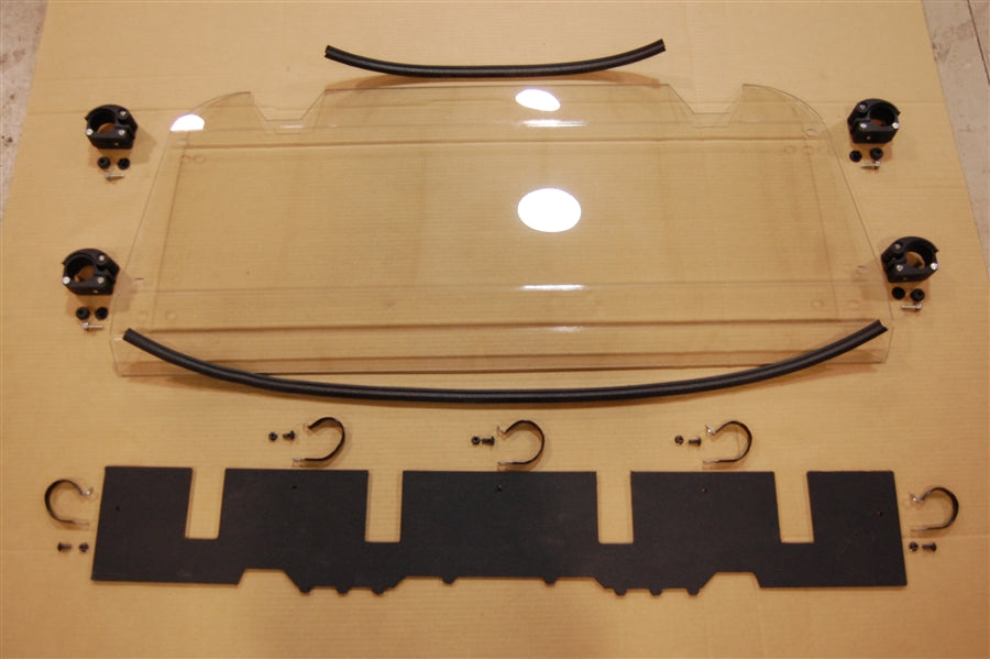 Trail Armor’s Rear Window Dust Shield kit provides the most effective barrier for keeping cargo, dust and debris out of the cab of your RZR XP 1000 and RZR XP Turbo. The upper rear windshield is made from ¼” thick (not 3/16” or 1/8”) clear polycarbonate, making it the strongest and most durable rear window on the market. Unlike some of the other rear windows on the market, Trail Armor’s Rear Window Dust Shield kit has a UV protective coating on the exterior of the window to inhibit yellowing. Additionally, instead of just fitting between the roll cage bars (leaving sizable gaps between the shield and the bars), Trail Armor’s Rear Window Dust Shield kit overlays the roll cage bars for a professional, tight fit as a cab back – essential when used as part of a full cab enclosure for those winter rides - and will not interfere with hard or soft tops. The bottom dust shield is made of ¼” black HMW haircell polyethylene and fits securely between the lower cage and the bed of your vehicle. It will not interfere with any bed function and will accommodate seat belt harness straps. Like all Trail Armor windshields, skids and debris shields, this Rear Window Dust Shield kit is cut with a CNC 5-axis router to ensure a smooth-edged, accurately cut product every time. Trail Armor’s Rear Window Dust Shield Kit is easy to install and features Trail Armor's fast clamps. Kit comes with all mounting hardware and detailed, photo-documented instructions. Also if your vehicle is the DESERT EDITION or if it has the POLARIS SIX POINT HARNESS, please specify using the drop down box. Will not fit the Highlifter edition due to the snorkles. See ALSO FITS CHART in gallery for specific year and models.