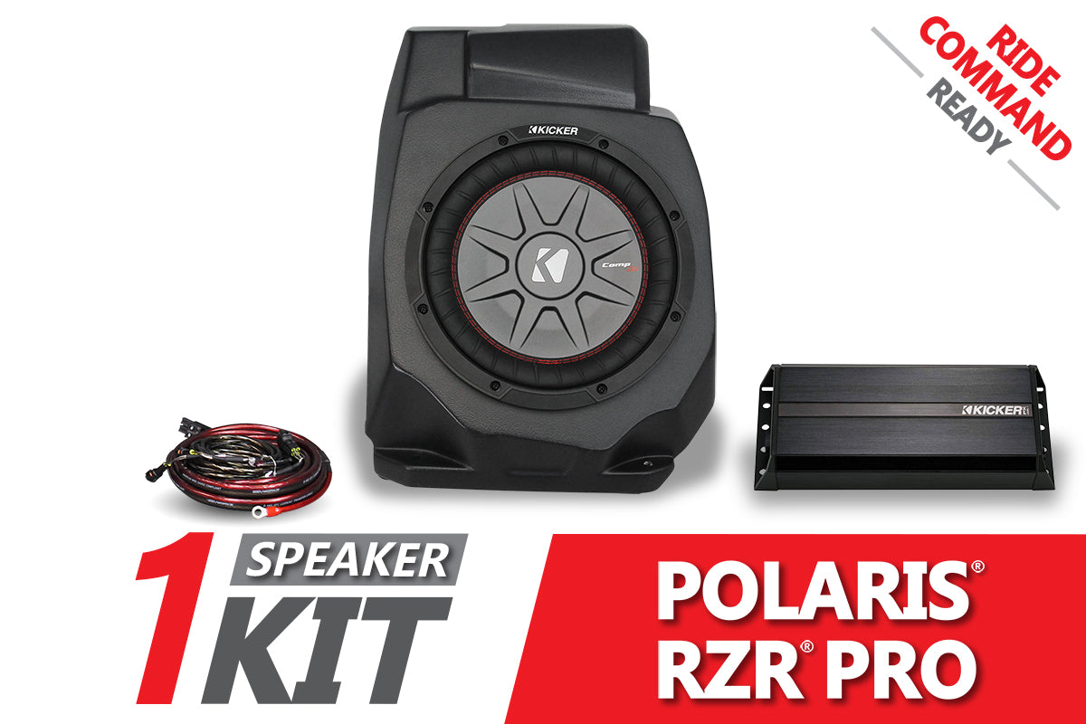 Plug-&-Play Subwoofer for Factory Polaris® RZR Pro Ride Command® Systems Our subwoofer enclosures are built with both performance and durability in mind. Designed with the proper airspace required for a 10”, you will feel the full potential of your subwoofer while hitting the trails. Mud, dirt, water or snow, the...